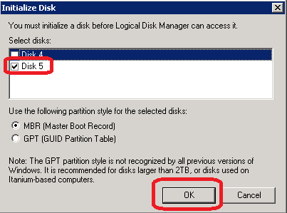 Hatırlarsanız Quroum için 1 GB lık disk ayırmıştık.İlgili diski önce initalize ediyoruz.