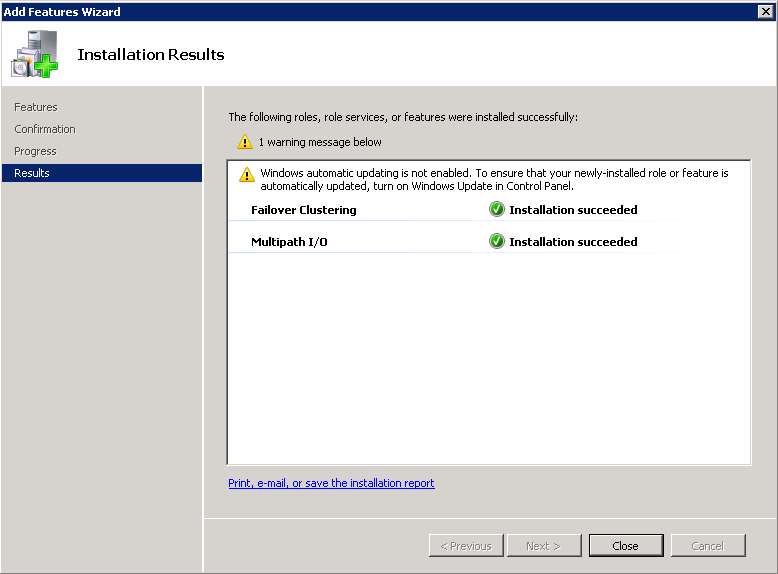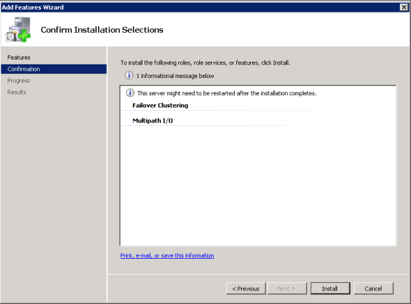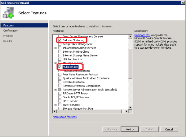 Yuklarıdaki şekildeki gibi Faiolver Cluster özelliğinin yanında MultiPath I/O özelliğini de sisteme yüklüyoruz ve Next ile devam ediyoruz.