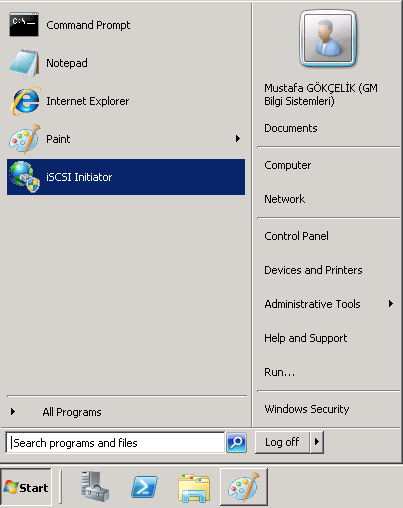 Evet Failover Cluster kurulumunu yaptıktan sonra artık ISCSI sunucuda ayrılmış olan diskleri sunucumuza gösterebiliriz.Bunun için ISCSI Initatorü tekrar açıyoruz.