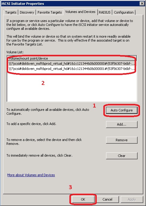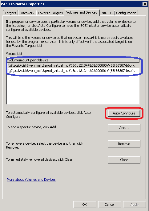 Status bilgisi Connected oldu.Son olarak Auto Configure yapmak için Volumes and Devices tabına geliyoruz.