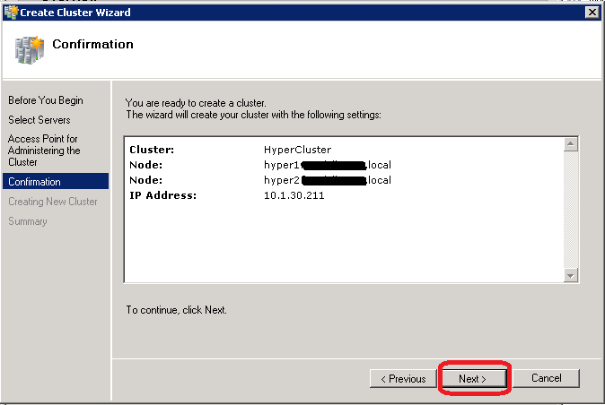 Validate işlemini bitiriyoruz ve Next ile Cluster kurulumuna devam ediyoruz.En son Hyper-V hostlarını seçmiştik.