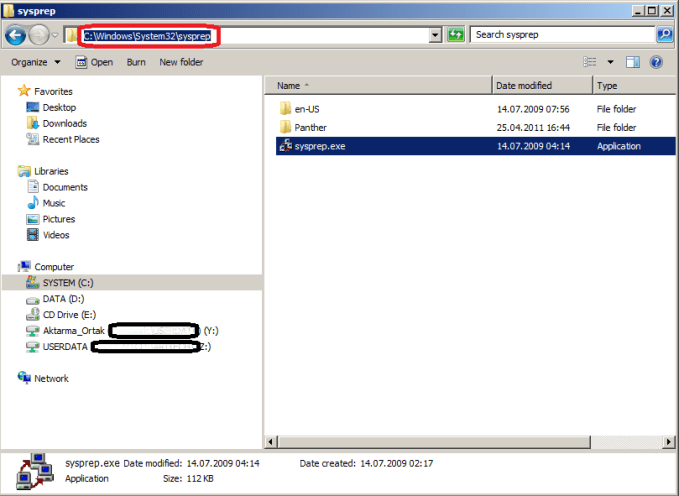 İlk olarak c:\windows\system32\sysprep yoluna ulaşıyoruz.