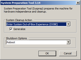 Default olarak Generalize checkboxı işaretli gelmez.Bunu işaretleyip Ok ile sistemi reboot ediyoruz.