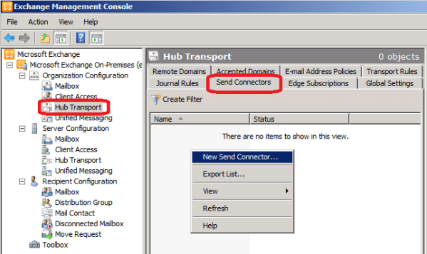 Kullanıcıların dışarıya mail atmasını sağlayan send connectorün nasıl oluşturulduğuna bakalım.