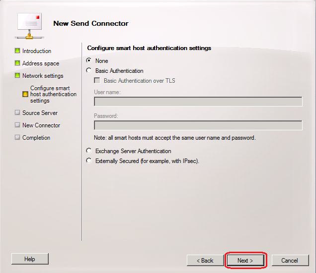 None:İştirak firma authentication yapmadan mail kabul ediyorsa bu seçenek seçilebilir.