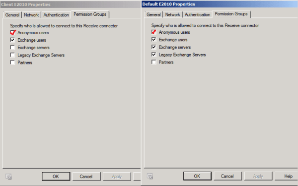 Dış dünyadan mail almak için yukarıdaki şekilde olduğu gibi her iki connectorün ayarlarından Anonymous Users işaretlenir.