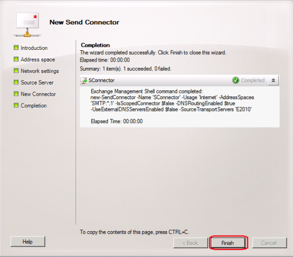 Finsih ile connector oluşturma işlemini bitiryoruz.Artık dış dünyaya mail atabilir hale geldik.