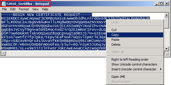Şimdi .req uzantısı olarak kayıt ettiğim dosyayı aşağıdaki gibi notepad ile açıp yukarıdaki işaretlediğim yere kayıt edeceğim.
