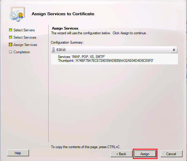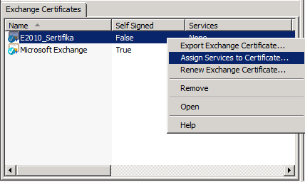 Sertifikamıza sağ tıklayarak “Assign Services to Certificate” diyoruz.