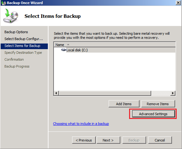 (C:) diskini seçtikten sonra “Advanced Settings” butonuna tıklıyoruz.