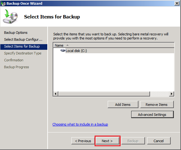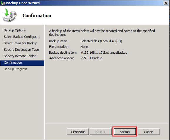 Exchange sunucumun olduğu işletim sisteminde tek bir disk sürücüsü (C:) var ve Exchange (C:) sürücüsünün içerisinde kurulu durumda.Biz burada (C:) sürücüsünü tümüyle seçiyoruz.Yaptığım testlerde sadece Exchange’in kurulu olduğu dizin olan “C:\Program Files\Microsoft\Exchange Server\V14\Mailbox\Mailbox Database 0498282107” klasörü seçip işlem yaptım fakat geri dönüş sırasında problem yaşadım.Bu yüzden (C:) diskinin hepsini seçip devam ediyorum.Eğer Exchange sunucunuzun uzantısı .edb olan database dosyası (C:) sürücüsü içerisinde , loglar ise başka bir sürücüde ise yine (C:) diskinin hepsini seçip logların olduğu sürücüdeki log dizinini seçmeniz yeterlidir.Exchange’in kurulu olduğu (C:) sürücüsünün tamamını değilde sadece kurulu olduğu dizini seçerseniz nasıl bir hata ile karşılaşacağımıza ilerde değineceğim.