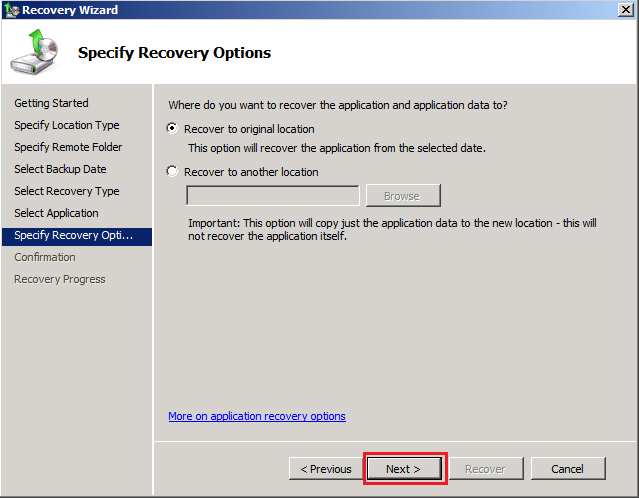 Hatırlarsanız makalenin başında (C:) diskinin tamamını almazsanız geri dönüşte problem yaşıyacağınızı söylemiştim.Eğer sadece Exchange uygulamasının kurulu olduğu dizini seçmiş olsaydık yukarıdaki ekranda “Applications” aktif olmayacaktı.Ben testimi yaparken bu hatayla karşılaştım.Hata ile ilgili açık bir döküman bulamadım.Deneyerek hatayı çözebildim.Yukarıdaki ekrandan “Applications” sekmesini seçip devam ediyoruz.