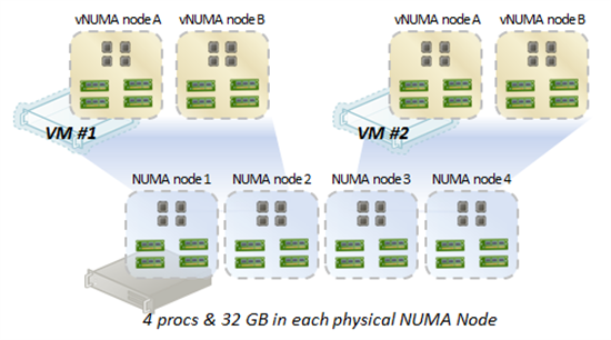 Fiziksel makine ile sanal makine arasındaki cpu ve memory işleyişi BUS veriyolları üzerinden gerçekleşir.NUMA sayesinde sanal makinelere atanan yüksek CPU ve RAM kaynaklarının fiziksel makinede hangi memory mödülüne ve CPU ya denk geldiğini ve bu işleyişin hangi BUS lar üzerinden yapıldığını sanal makineler NUMA sayesinde bilir.