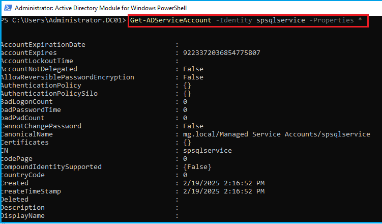 Install-AdServiceAccount -Identity "spsqlservice$"