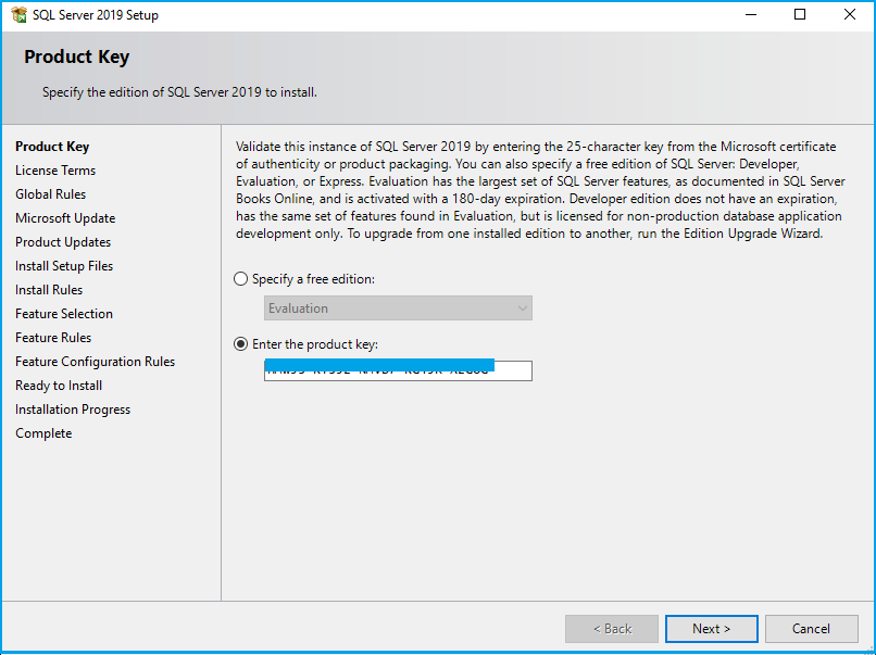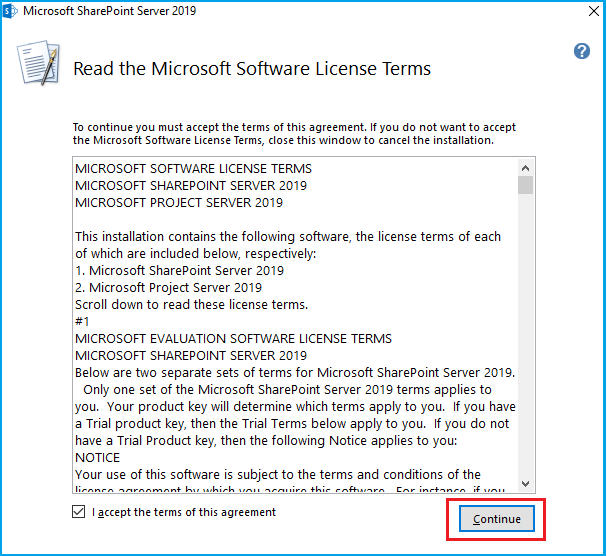 Standart ve Enterprise trial key lerine https://www.microsoft.com/en-us/evalcenter/download-sharepoint-server-2019 sitesinden erişebilirsiniz. Geçici süreli (180 Gün) enterprise key imizi girerek devam ediyoruz.