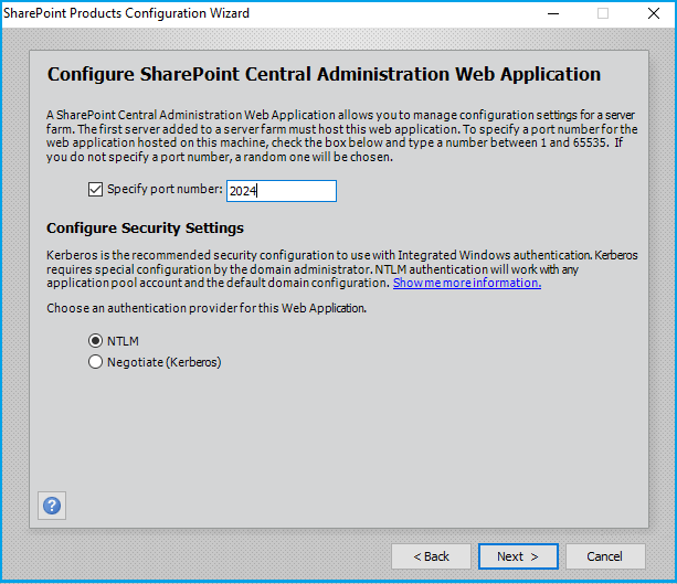 Site miz için authentication metodumuzu ve hangi portu kullanacağımızı seçiyoruz.