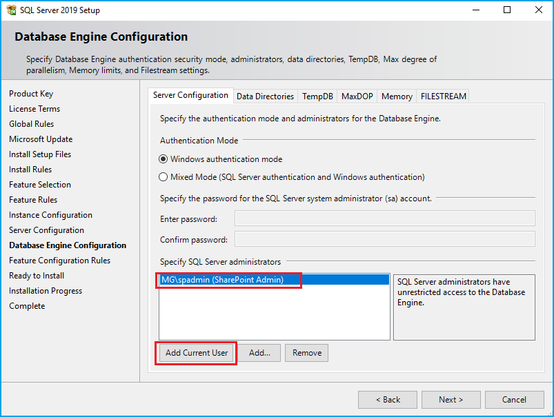 | SPSQL01.mg.local | SharePoint SQL Server | Windows Server 2019 |